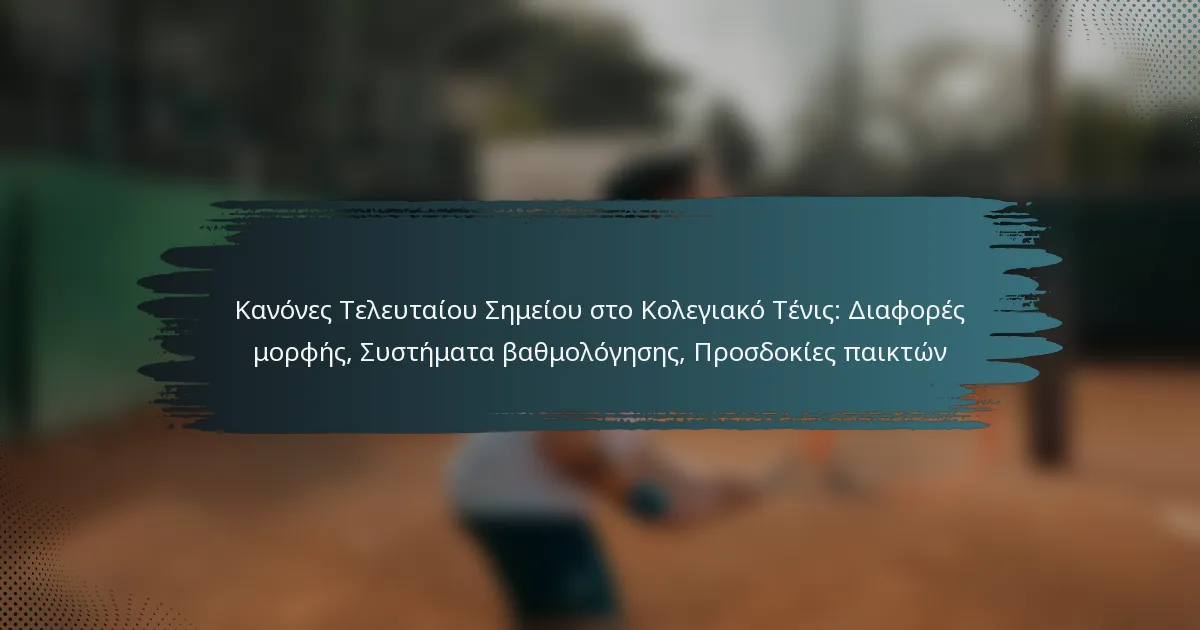 Οι κανόνες και οι μορφές των tie breaks στο κολλεγιακό τένις διαφέρουν από αυτούς του επαγγελματικού τένις, περιλαμβάνοντας παραλλαγές στις απαιτήσεις πόντων και τα συστήματα βαθμολόγησης. Η κατανόηση αυτών των λεπτομερειών είναι ουσιώδης για τους παίκτες και τους προπονητές ώστε να πλοηγούνται αποτελεσματικά στους αγώνες. Επιπλέον, οι παίκτες αναμένεται να τηρούν τον αθλητισμό και να επικοινωνούν καλά με τους διαιτητές, κάτι που είναι ζωτικής σημασίας για τη διατήρηση ενός ανταγωνιστικού και δίκαιου κλίματος κατά τη διάρκεια αυτών των στιγμών υψηλής πίεσης.